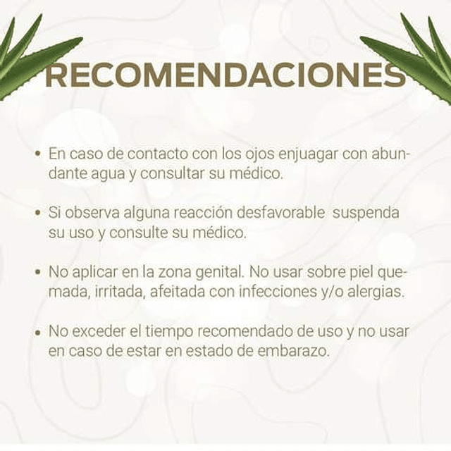 NO exceder el tiempo recomendado de uso y no usar en caso de estar en estado de embarazo.