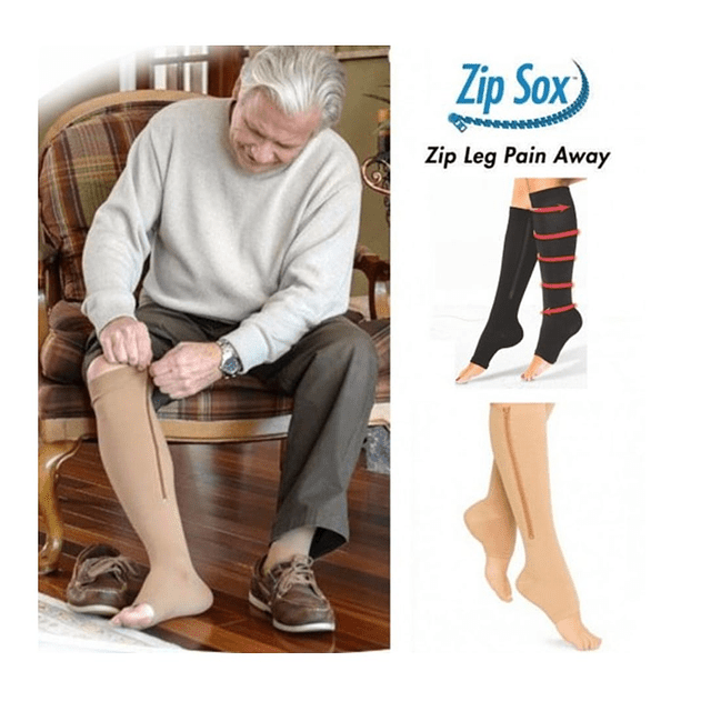 Los nuevos y revolucionarios calcetines de compresión con cremallera alivian el dolor, la hinchazón y las venas varicosas. La cremallera resistente a pellizcos hace que Zip-Sox sea muy fácil de poner y quitar.
